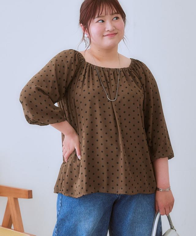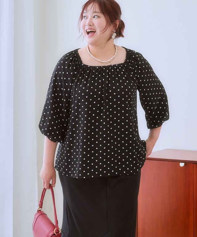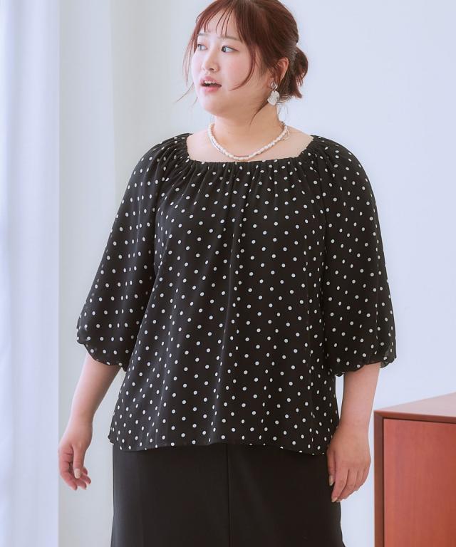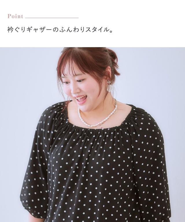 シャツ ブラウス レディース ふんわりシルエットドット プリント 秋 | L/LL/3L | ニッセン nissen