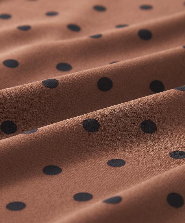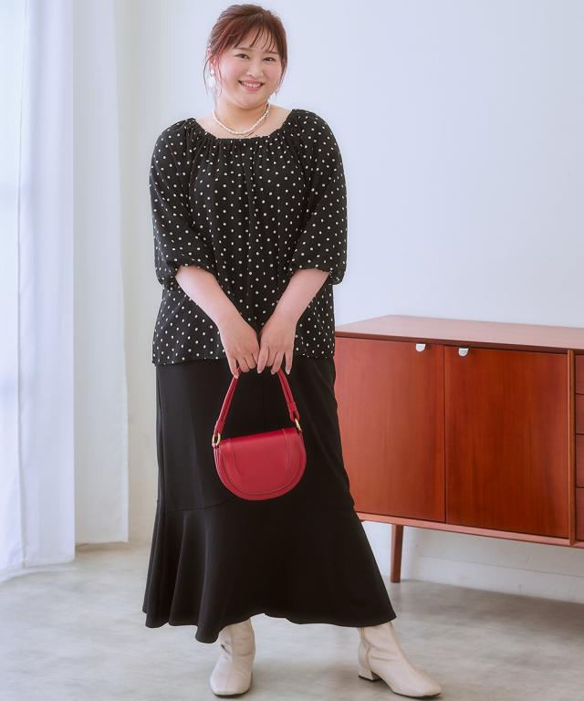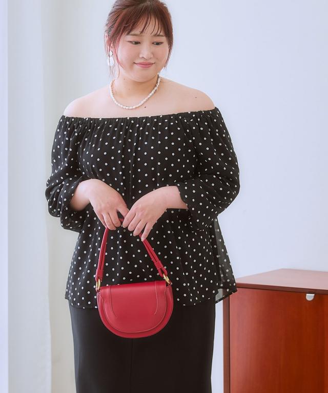 ふんわりシルエットで体型カバーも叶う、大人のドット柄ブラウス。トレンド感と着心地の良さを両立した、あなたを輝かせる一枚。■デザイン気になる体型をふんわりカバーしてくれる、ゆったりシルエットのブラウスです。 スクエアネックがデコルテを綺麗に見せ、女性らしさを引き立てます。 全面に施されたドット柄は、落ち着いた色味で甘くなりすぎず、大人の可愛らしさを演出。 襟元と袖口のゴムシャーリングが、程よいフィット感とフェミニンな印象をプラスします。お好みでオフショルダーにアレンジしても ■素材ポリエステル100%で、さらりとした肌触りが特徴です。 軽くてシワになりにくく、お手入れが簡単なのも嬉しいポイント。 裏地付きなので、透け感を気にせず安心して着用できます。 ■おすすめのスタイリングブラウスの可愛らしさを引き立てる、シンプルなボトムスとのコーディネートがおすすめです。 デニムと合わせてカジュアルに、フレアスカートと合わせてフェミニンに、と様々な表情を楽しめます。 足元は、パンプスやサンダルで上品にまとめたり、スニーカーでカジュアルダウンさせてもおしゃれ。 アクセサリーは、華奢なネックレスやピアスで上品さをプラスするのがおすすめです