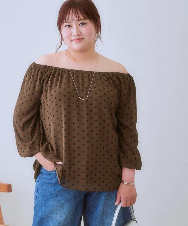 ふんわりシルエットで体型カバーも叶う、大人のドット柄ブラウス。トレンド感と着心地の良さを両立した、あなたを輝かせる一枚。■デザイン気になる体型をふんわりカバーしてくれる、ゆったりシルエットのブラウスです。 スクエアネックがデコルテを綺麗に見せ、女性らしさを引き立てます。 全面に施されたドット柄は、落ち着いた色味で甘くなりすぎず、大人の可愛らしさを演出。 襟元と袖口のゴムシャーリングが、程よいフィット感とフェミニンな印象をプラスします。お好みでオフショルダーにアレンジしても ■素材ポリエステル100%で、さらりとした肌触りが特徴です。 軽くてシワになりにくく、お手入れが簡単なのも嬉しいポイント。 裏地付きなので、透け感を気にせず安心して着用できます。 ■おすすめのスタイリングブラウスの可愛らしさを引き立てる、シンプルなボトムスとのコーディネートがおすすめです。 デニムと合わせてカジュアルに、フレアスカートと合わせてフェミニンに、と様々な表情を楽しめます。 足元は、パンプスやサンダルで上品にまとめたり、スニーカーでカジュアルダウンさせてもおしゃれ。 アクセサリーは、華奢なネックレスやピアスで上品さをプラスするのがおすすめです