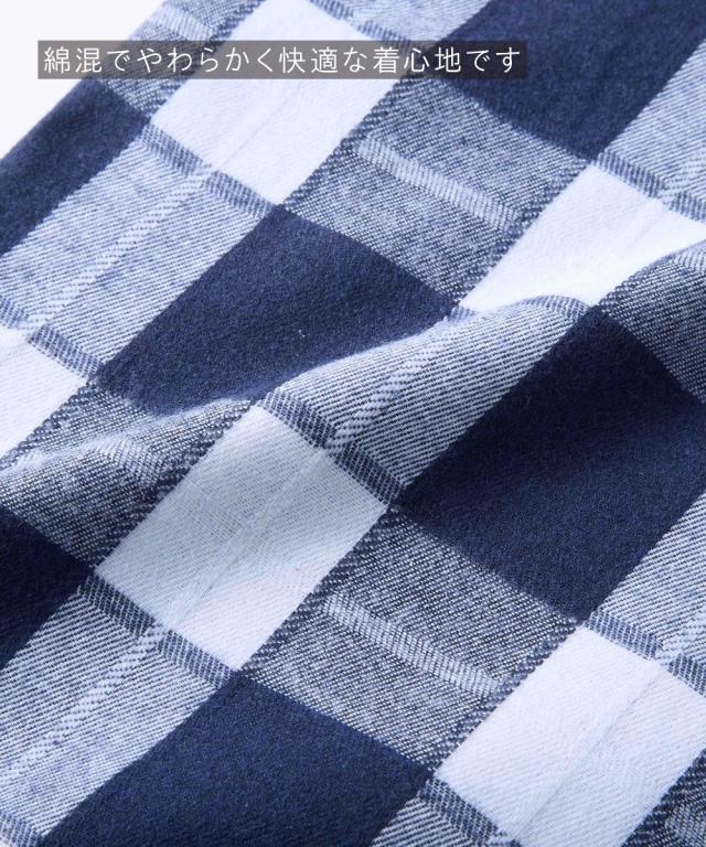 肌当たりがやさしく、やわらかくて温もり感のある先染めチェック柄パジャマ。パンツにはウエストゴムを簡単に取り替えられる取替口があるので、長く愛用できます。トップス、パンツともにポケットが備わっているのも便利。大きいサイズも展開しております。(M/L/LL/3L/4L/5L/6L/8L/10Lサイズ)■デザイン微起毛素材でやさしい肌触りが特徴の前開きパジャマ。季節の変わり目から長いシーズン着用していただけます。トップスは胸ポケット、パンツにも後ポケット付でウエストゴム取替口付で長く着用していただけます。■素材やわらかな微起毛素材でやさしい着心地が特徴。