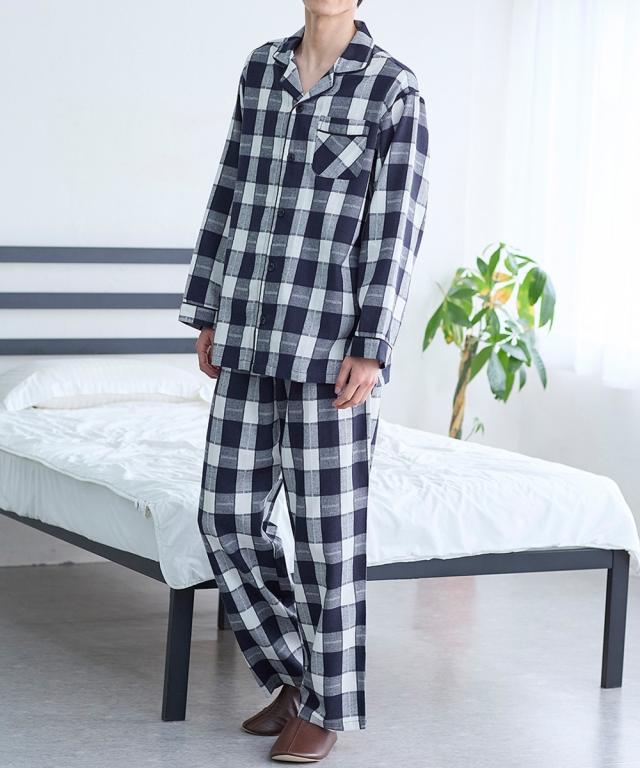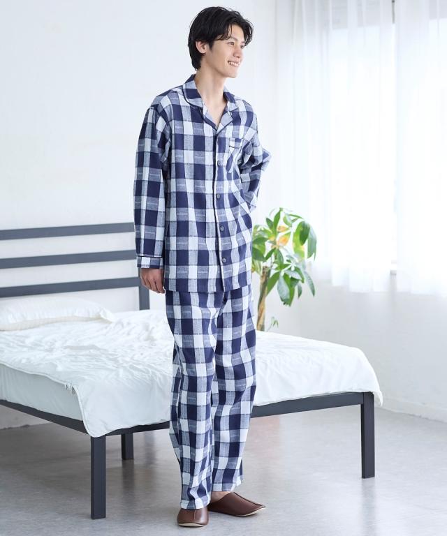 パジャマ メンズ 先染チェック 前開き 春 秋 部屋着 | M/L/LL | ニッセン nissen
