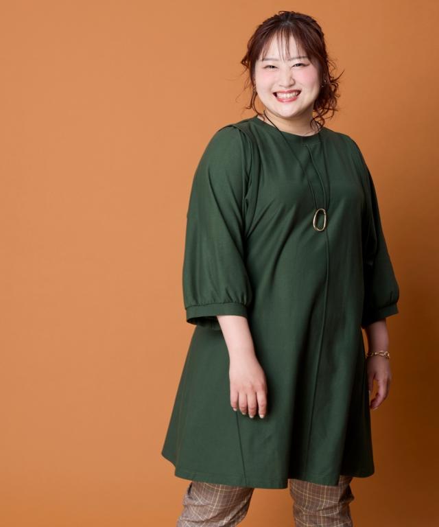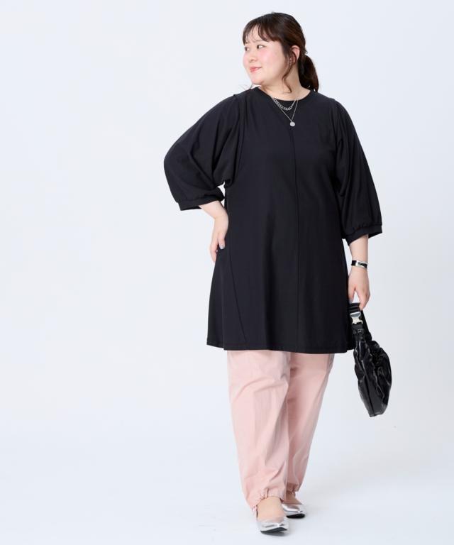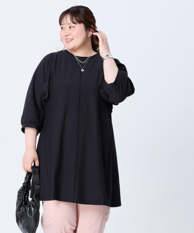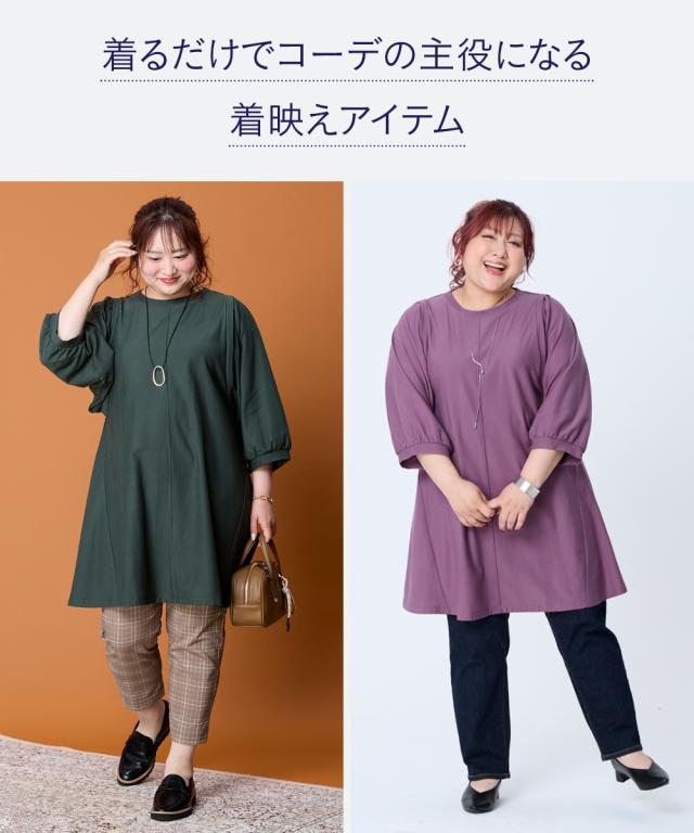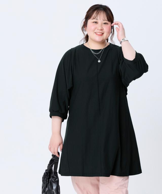 大きいサイズ 【スッキリ見え設計】体のラインをひろいにくい袖バルーンフレアチュニック(抗菌防臭)