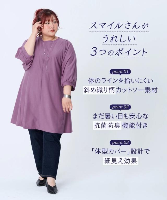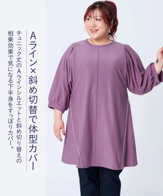 チュニック レディース スッキリ見え設計 体のラインをひろいにくい袖バルーンフレア 抗菌防臭 秋 体型カバー お尻隠れる | 4L/5L/6L | ニッセン nissen