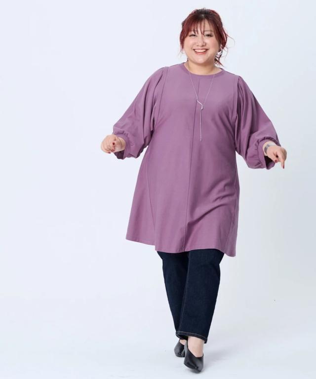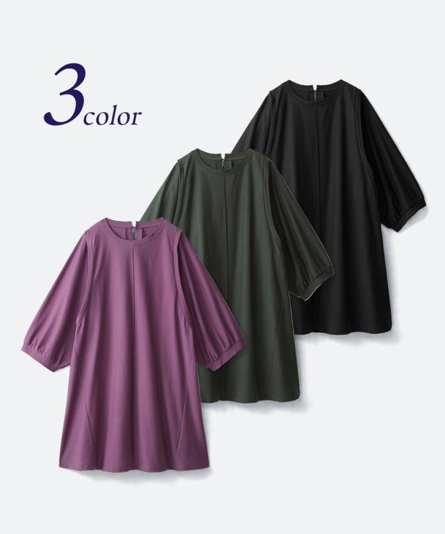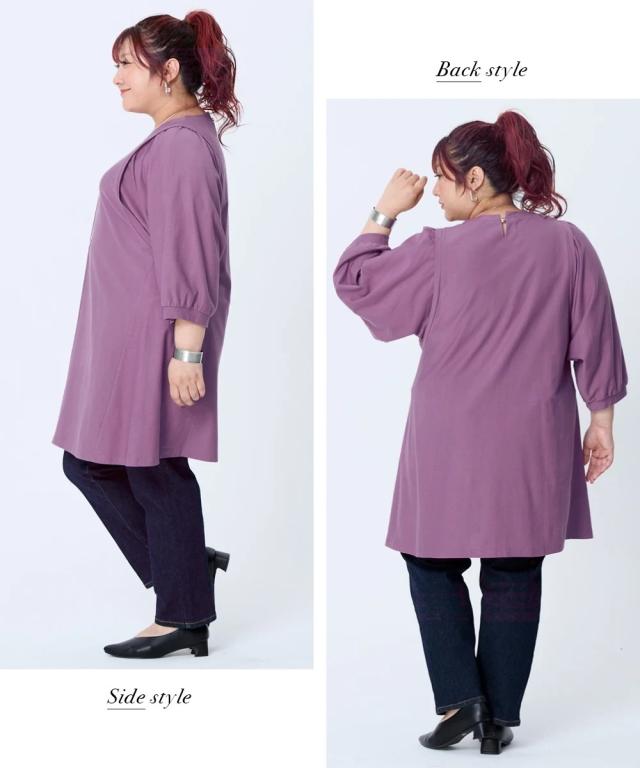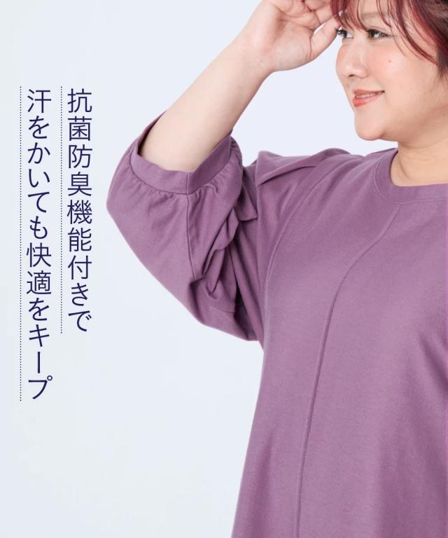 大きいサイズ 【スッキリ見え設計】体のラインをひろいにくい袖バルーンフレアチュニック(抗菌防臭)