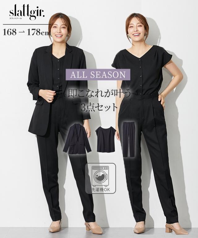 スーツ トールサイズ レディース 高身長 ドビー素材 セットアップ テーパード パンツ 3点セット ロング丈 テーラード ジャケット +2WAY ブラウス + ニッセン