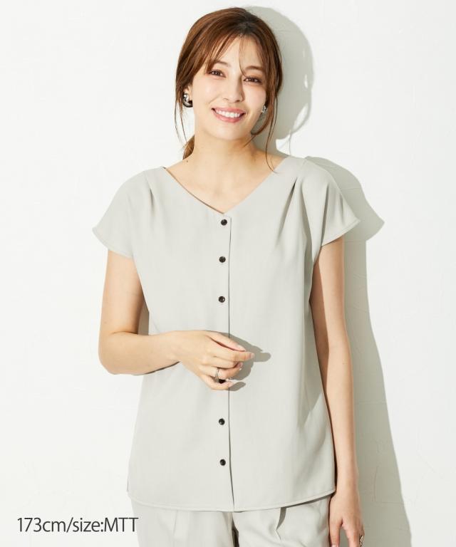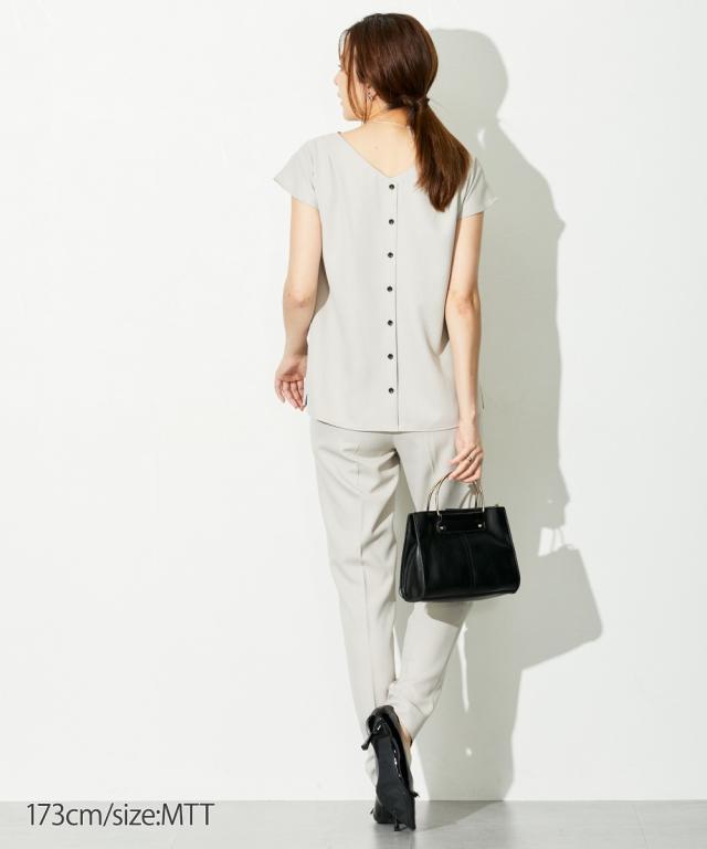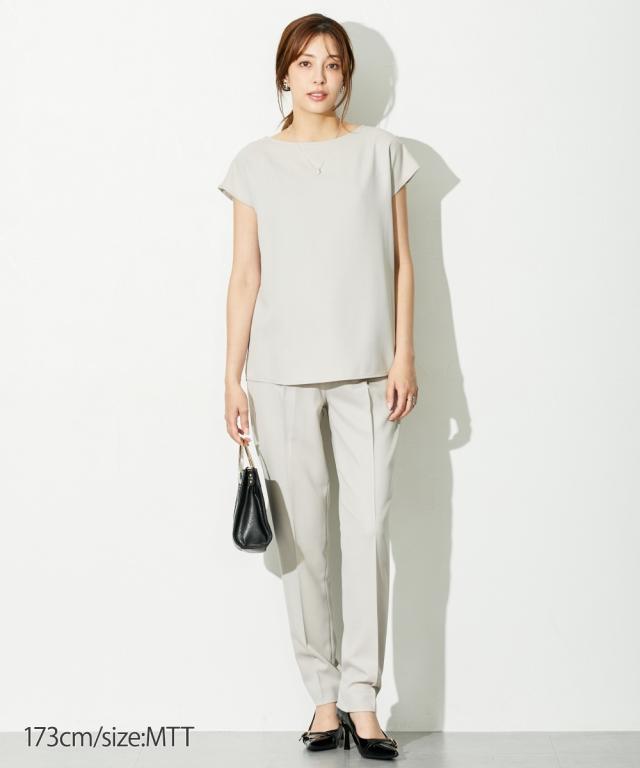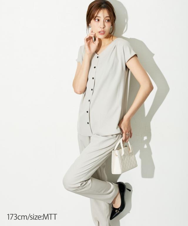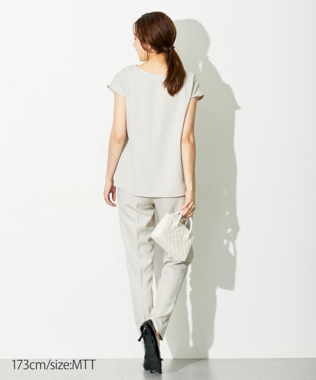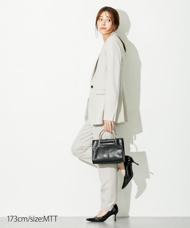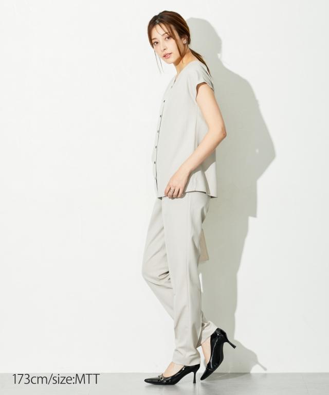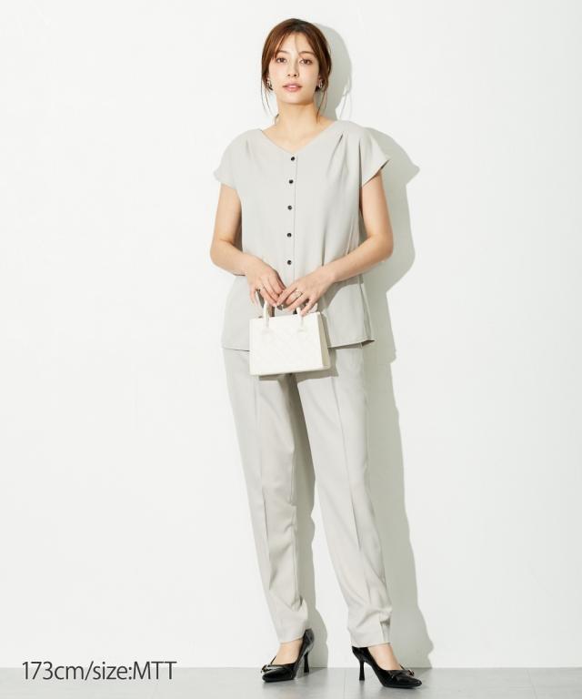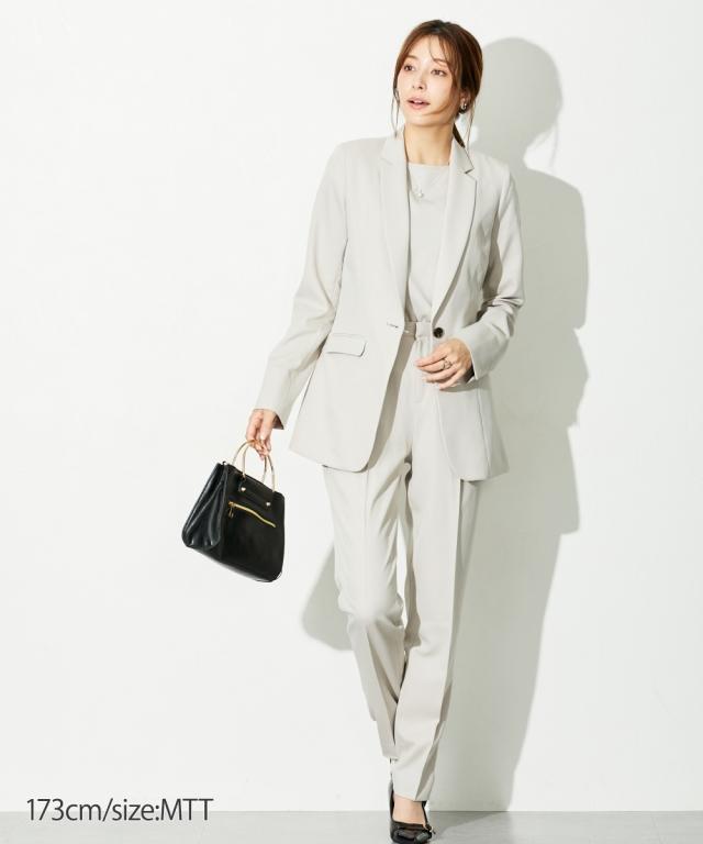 【高身長な方向け】ブラウスは前後2WAY仕様。着るだけで即こなれコーデが完成する時短セットアップスーツ!■デザイン・セットで着用するだけでコーデが即完成!・単品使いもできて着回し力抜群です・普段の通勤着や、小物合わせ次第でセレモニーにもご着用いただけます・高身長さん専用設計で、袖丈・着丈などばっちり長めです!■素材ドビー素材で上品な印象。薄すぎないのでロングシーズン活躍します。※ジャケットが背抜きのため、真冬以外での着用がおすすめです。