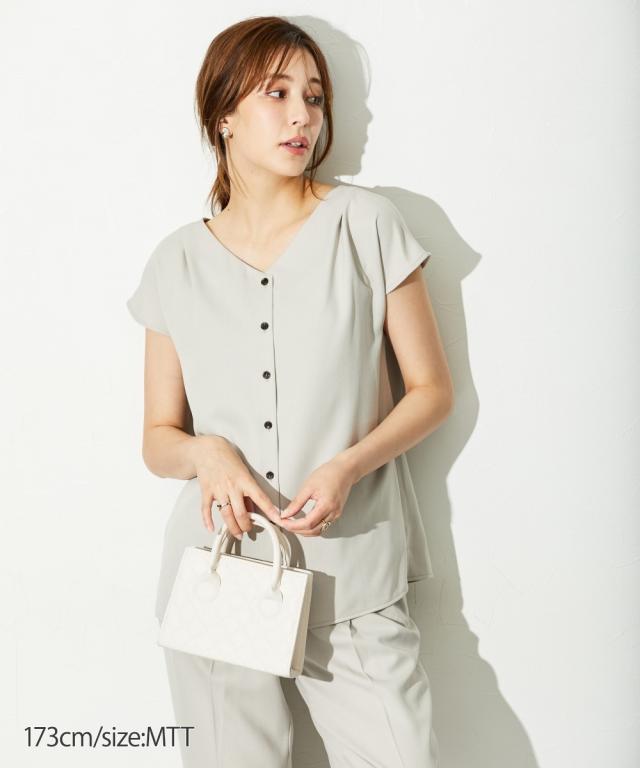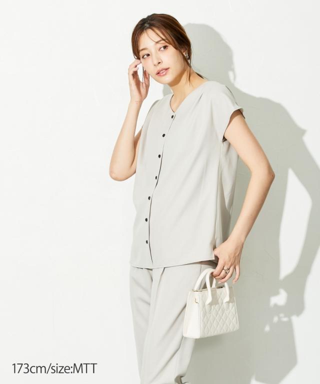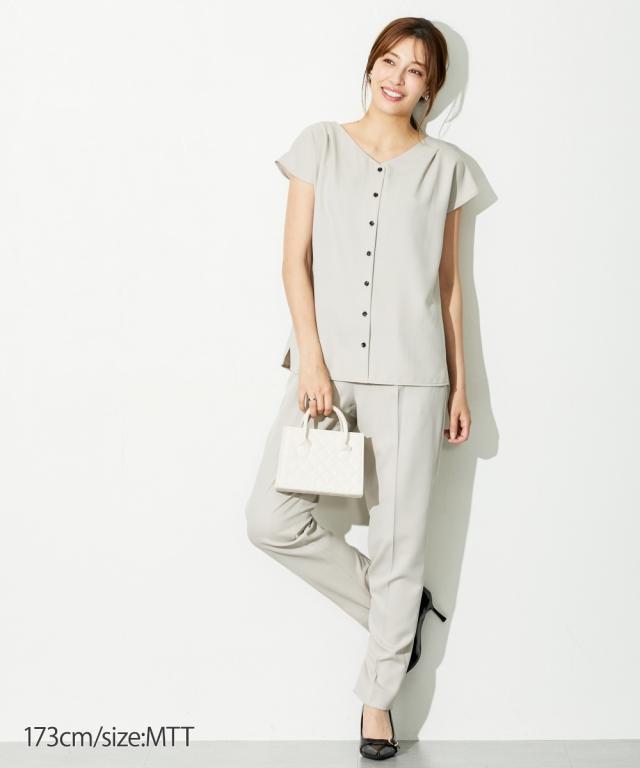 【高身長な方向け】ブラウスは前後2WAY仕様。着るだけで即こなれコーデが完成する時短セットアップスーツ!■デザイン・セットで着用するだけでコーデが即完成!・単品使いもできて着回し力抜群です・普段の通勤着や、小物合わせ次第でセレモニーにもご着用いただけます・高身長さん専用設計で、袖丈・着丈などばっちり長めです!■素材ドビー素材で上品な印象。薄すぎないのでロングシーズン活躍します。※ジャケットが背抜きのため、真冬以外での着用がおすすめです。