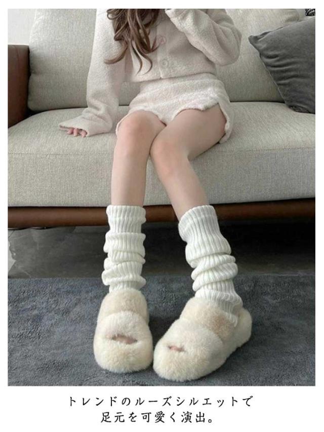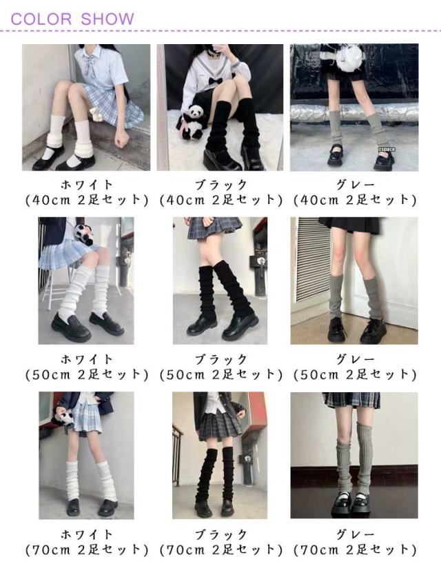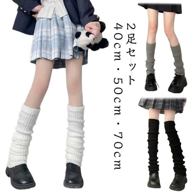 【2足セット】 レッグウォーマー ルーズソックス レディース 秋冬 春 靴下 レトロ 原宿風 韓国風 脚長効果 くしゅくしゅ 可愛い ブラック ホワイト グレー 40cm 50cm 70cm ルーズフィット 無地 学生 カジュアル かわいい