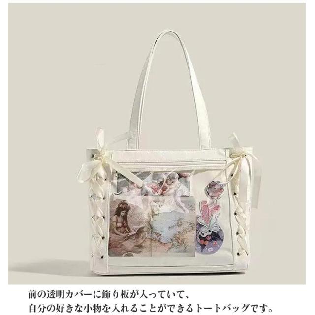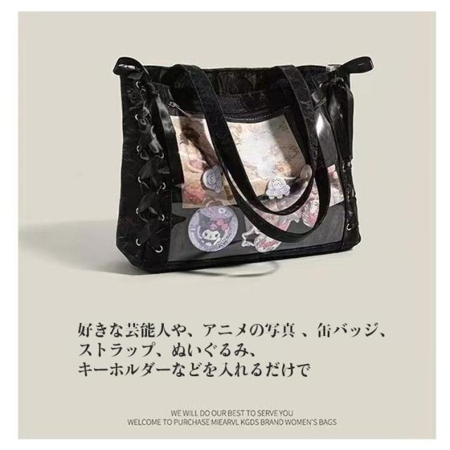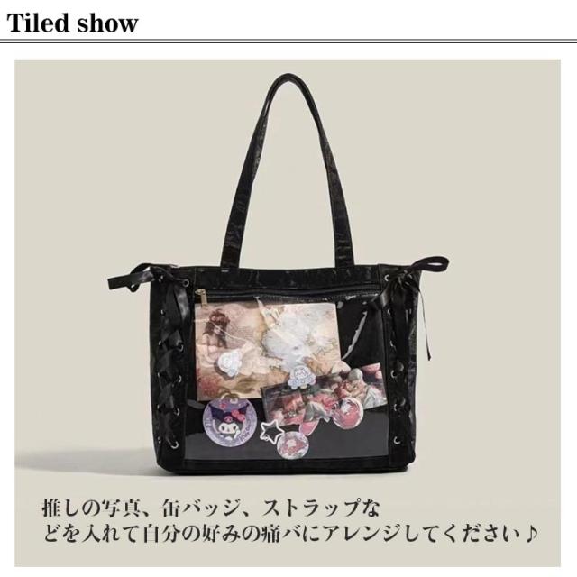 痛バッグ ショルダーバッグ 2way 2way レースアップ ぬいぐるみ ショルダー バッグ 透明 クリアバッグ A4 大きめ 推し活 バッグ 痛バ トートバッグ 透明窓 おしゃれ ビニール 缶バッジ 見せる 大容量 見せバッグ 軽量 子供 学生鞄 学生バッグ 学生かばん 推しバッグ イベント