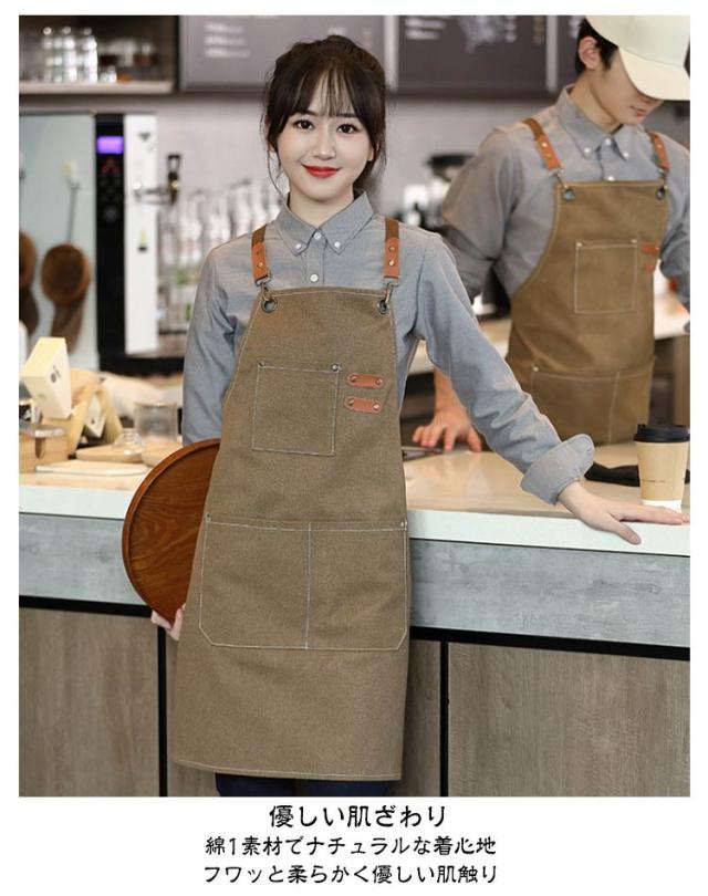 エプロン おしゃれ ワークエプロン ミディアム デニムエプロン カフェエプロン 大きいサイズ かぶるだけ マルチポケット 厚手 丈夫 オシャレ レディース メンズ 大人 北欧 無地 クロス 結び 前掛け 仕事用 保育士 美容師 かわいい