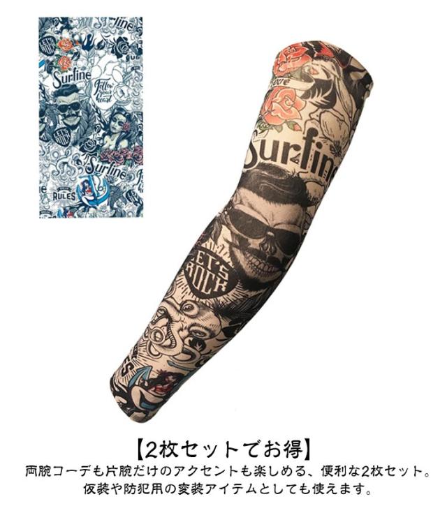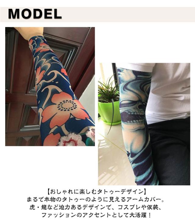 タトゥー アームカバー メンズ 2枚入り タトゥースリーブ タトゥー風アームカバー おしゃれ uvカット 肘サポーター 刺青 入れ墨 入墨 柄 虎 龍 タトゥー アームウォーマー uvカット 紫外線対策 男性 女性 アームカバー 避難 送料無料