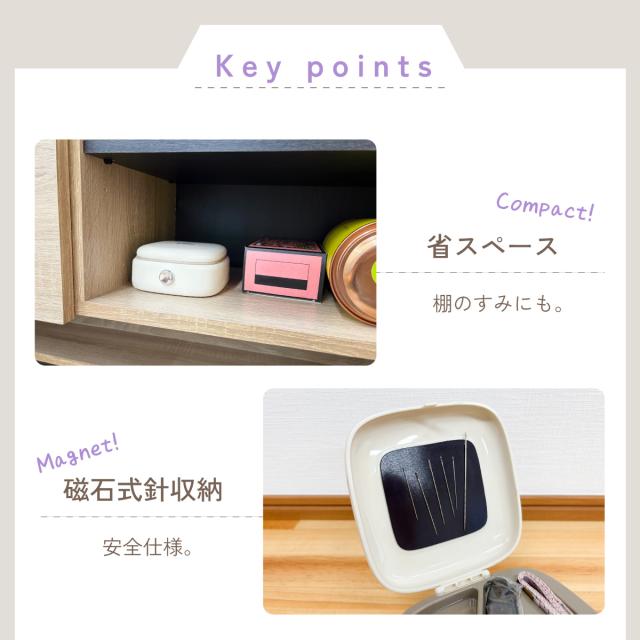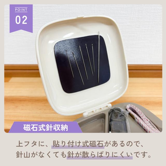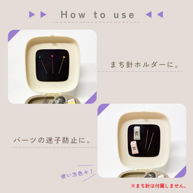 上フタに、貼り付け式磁石があるので、針山がなくても、針が散らばりにくい。