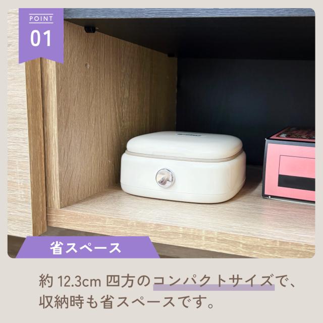 約12.3cm四方のコンパクトサイズで、収納時も省スペースです。