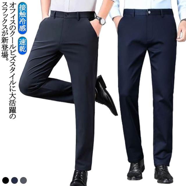スラックス メンズ 春夏 春秋 スリム 大きいサイズ メンズ ストレッチ スラックス 接触冷感 ノータック アイスシルクパンツ ロングパンツ ボトムス スーツパンツ ビジネス 薄手 通気性 速乾 ストレート 夏服 スリム スラックス 長ズボン 通勤 大きいサイズ