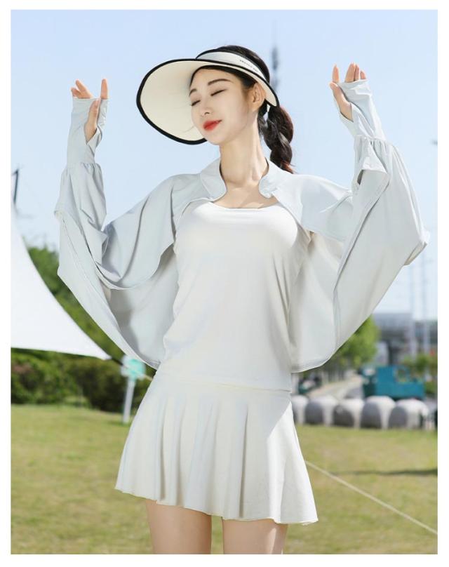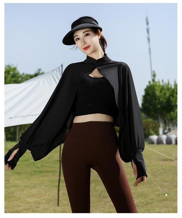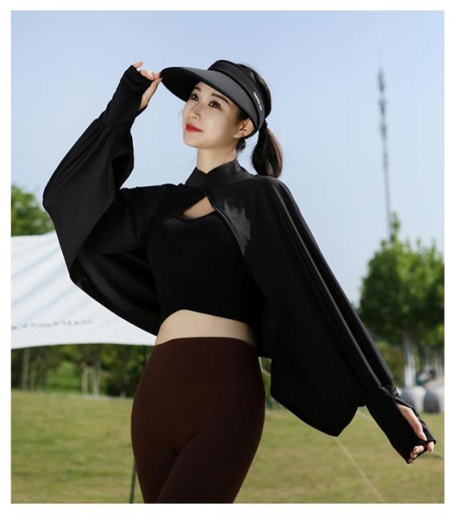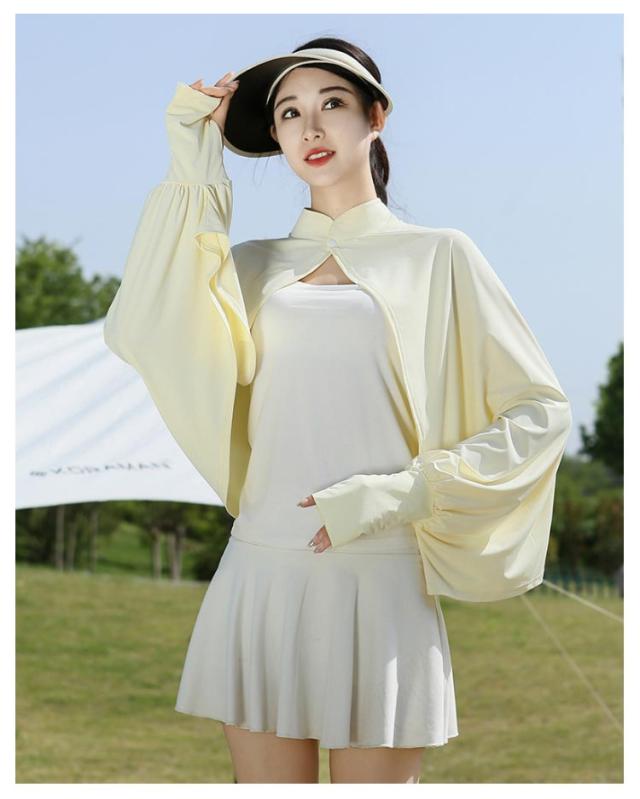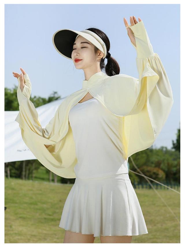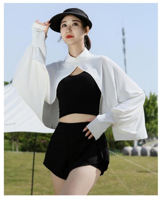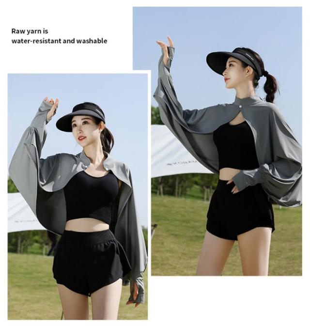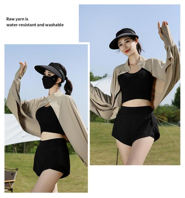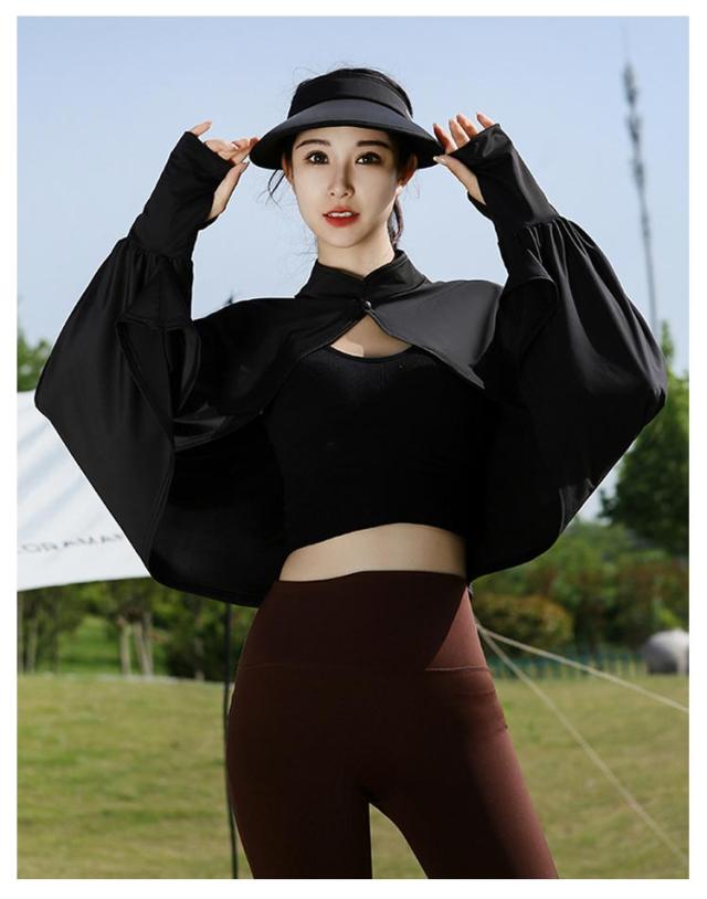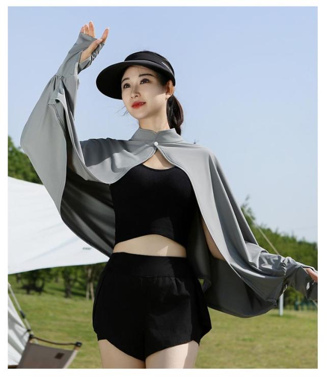 立ち襟 UVカット ケープ マント 冷感 ポンチョ UPF50+ レディース 可愛い UV パーカー ラッシュガード 長袖 ライトアウター ショート丈 ゆったり 日よけ カーディガン アームカバー 着る 指穴 ボタン トップス 体型カバー ボレロ 送料無料
