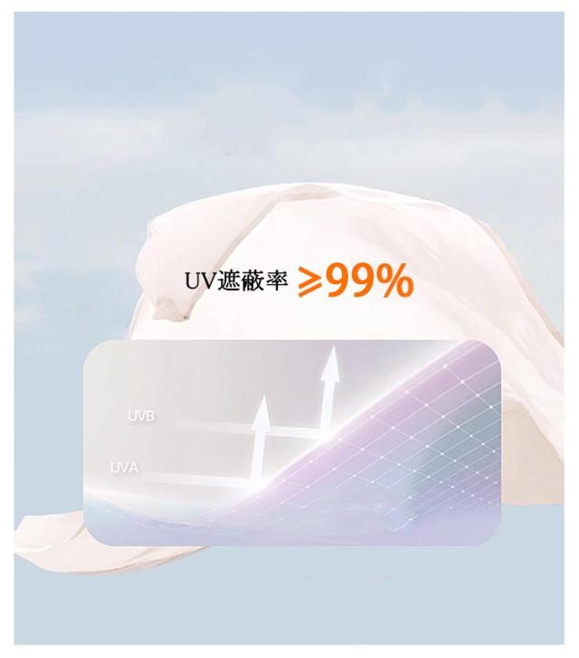 | UVカット率も安心の「全カラーUV遮蔽率99.9%以上」 UPF50+ 指穴付きの袖口で手の甲、手の平もしっかりカバー。 繊維自体にUVカット効果のある物質を含ませることで紫外線を吸収して熱や光に変換することで肌を守っています。 洗濯をしても、効果は落ちず、生地に傷みがでない限り、永久的にUVカット効果が続けます。 長く外出しなくてはいけない時も、紫外線から肌をしっかり守ります! | |