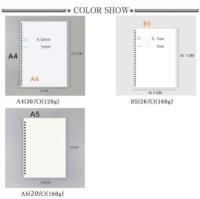 | 色 | A4(30穴)(120g) B5(26穴)(160g) A5(20穴)(160g) |