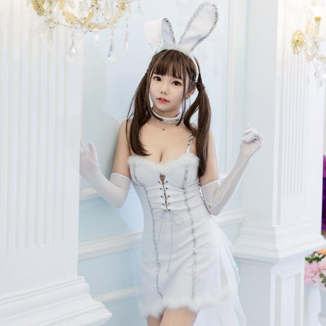 バニーガール ハロウィン カチューシャ付き4点SETバニーガール コスチューム キャバ うさ耳 コスプレ衣装 コスプレ ホワイト サンタコス クリスマス衣装