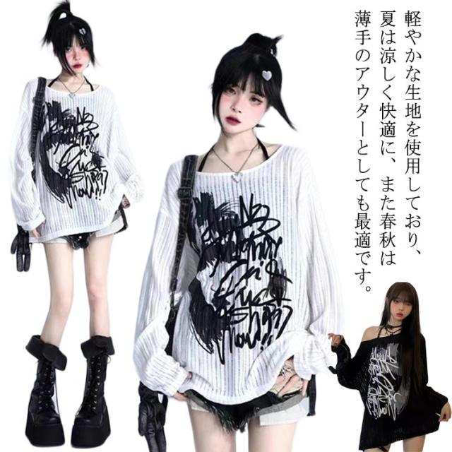 カットソー 長袖Tシャツ 長袖Tシャツ 夏 プルーオーバー トップス サブカル系 地雷系 レディース 秋 可愛い 春 ゆったり 大きいサイズ 原宿系