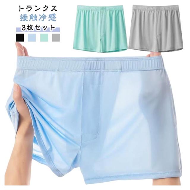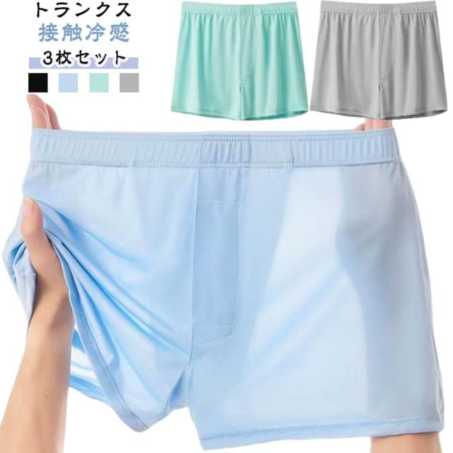 メンズ トランクス アンダーウェア 3枚セット 接触冷感 冷感 接触冷感 夏用 ひんやり 通気 速乾 ストレッチ ボクサーパンツ 下着 インナー 大きいサイズ 春夏秋 父の日 プレゼント