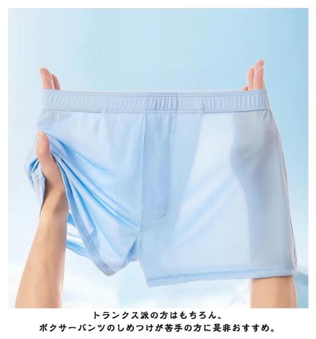 | 【3枚セット】 【接触冷感】 【トランクス】 通気性抜群の素材で快適な履き心地のメンズトランクス! 柔らかく、ゆったりとした履き心地と、なめらかな肌触りで快適な着心地です。 少し薄めの生地で抜群の通気性があり、暑い夏場に快適です。 アイスシルク素材で、吸汗速乾性に優れドライタッチ、清涼感のある肌触り。 トランクス派の方はもちろん、ボクサーパンツのしめつけが苦手の方に是非おすすめ。 | |