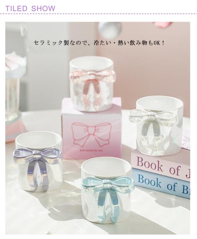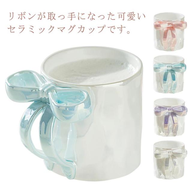 マグカップ マグカップ セラミック 雑貨 350ml コップ ティーカップ コーヒーマグ 可愛い おしゃれ リボン取っ手 コーヒー かわいい プレゼント ギフト 誕生日