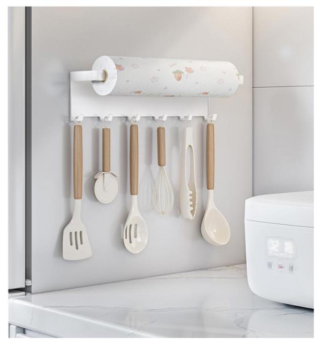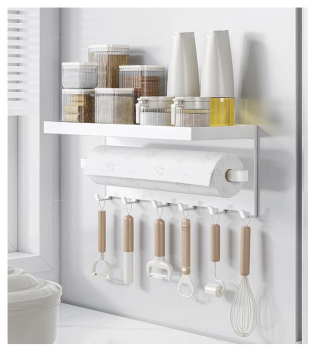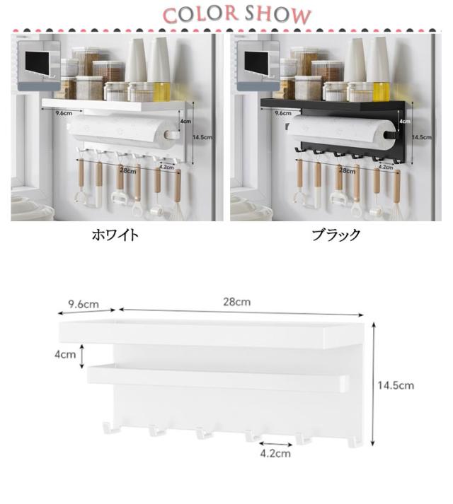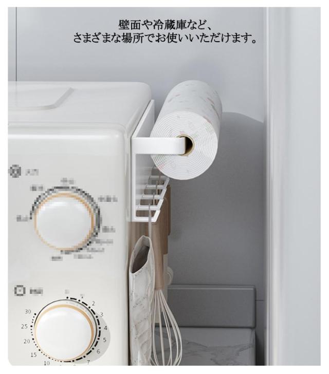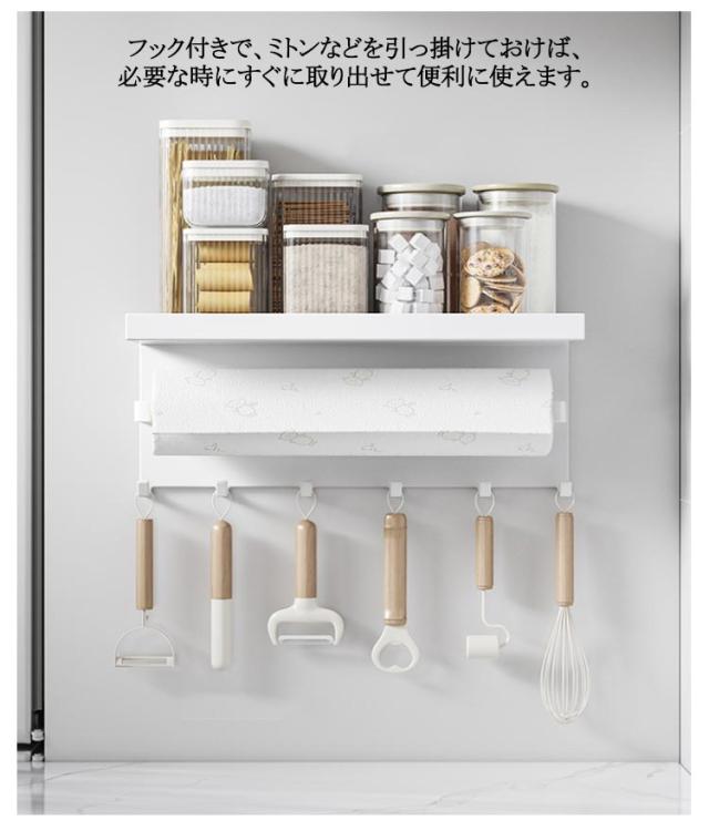 横型 マグネット スチール キッチンペーパーホルダー 冷蔵庫 キッチン棚 ホルダー 収納棚 フック付き ロールペーパー キッチンペーパー キッチンタオル 磁石 ペーパータオル 布巾干し ウォールラック タオル掛け マグネット キッチン おしゃれ 白 黒 ホワイト