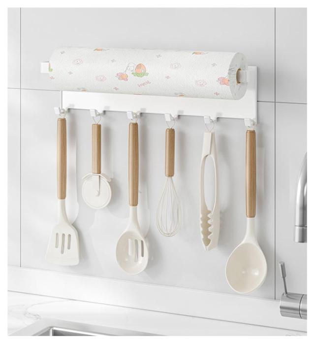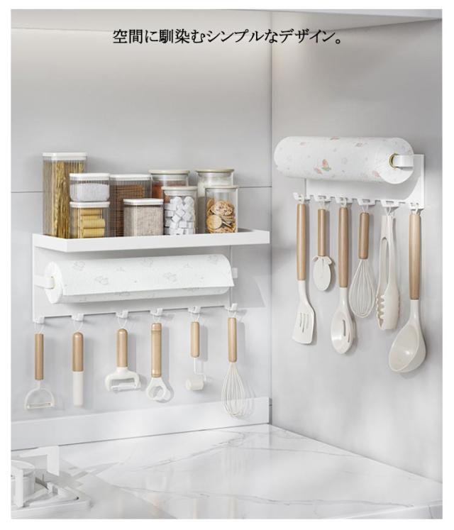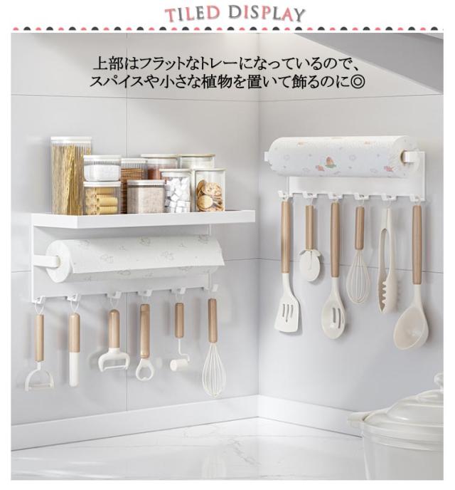 | お好みの位置に簡単に取り付けできるキッチンペーパーホルダー。【キッチン棚?フック付き】 上部はフラットなトレーになっているので、スパイスや小さな植物を置いて飾るのに◎ フック付きで、ミトンなどを引っ掛けておけば、必要な時にすぐに取り出せて便利に使えます。 壁面や冷蔵庫など、さまざまな場所でお使いいただけます。 空間に馴染むシンプルなデザイン。 | |