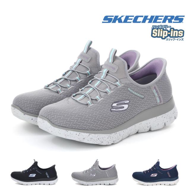 スケッチャーズ SKECHERS レディース スニーカー スリッポン スリップインズ ウォータープルーフ サミッツ ベスト チョイス 150199W ワイド幅 幅広 ゆったり ハンズフリー 立ったまま履ける靴 防水 レインスニーカー レインシューズ