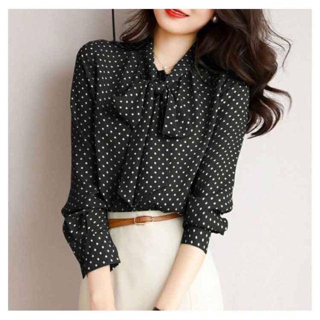 春 リボンブラウス ボウタイリボンブラウス長袖 ドット柄 トップス ブラウス 30代 シフォンブラウス オフィス シャツブラウス 水玉模様 レディース 秋 おしゃれ 大人 60代 40代 50代 ゆったり きれいめ 着やせ エレガント おしゃれ 可愛い 二次会 同窓会 女子会