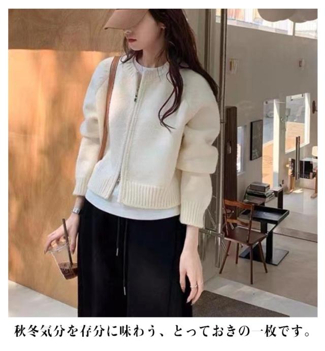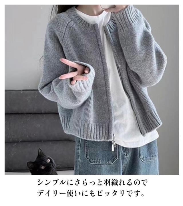 カーディガン ニットカーディガン ニット ニット レディース 羽織り カーディガン 羽織り ニット ショート丈 ジップアップ ブルゾン クルーネック ライトアウター 長袖 ジッパー 羽織もの 春秋 無地 アウター コーデ 前開き