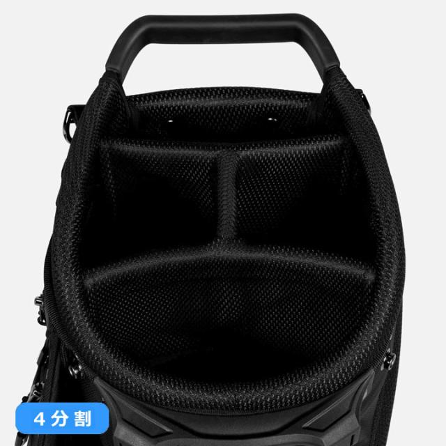 PXGの「エクストリームキャリー スタンドバッグ」は、ウォーキングにもカート使用にも最適な設計。4分割トップ、合計13個のポケット、バックパックスタイルのデュアルストラップ、マグネット付きカーボンファイバー製スタンド、背面パッド、保冷ドリンクポケットなど、機能性も抜群です。