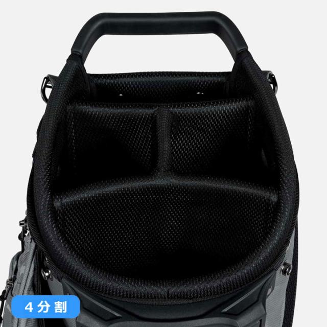 PXGの「エクストリームキャリー スタンドバッグ」は、ウォーキングにもカート使用にも最適な設計。4分割トップ、合計13個のポケット、バックパックスタイルのデュアルストラップ、マグネット付きカーボンファイバー製スタンド、背面パッド、保冷ドリンクポケットなど、機能性も抜群です。
