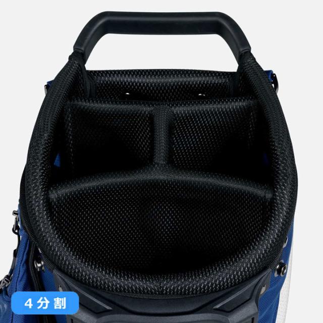 PXGの「エクストリームキャリー スタンドバッグ」は、ウォーキングにもカート使用にも最適な設計。4分割トップ、合計13個のポケット、バックパックスタイルのデュアルストラップ、マグネット付きカーボンファイバー製スタンド、背面パッド、保冷ドリンクポケットなど、機能性も抜群です。