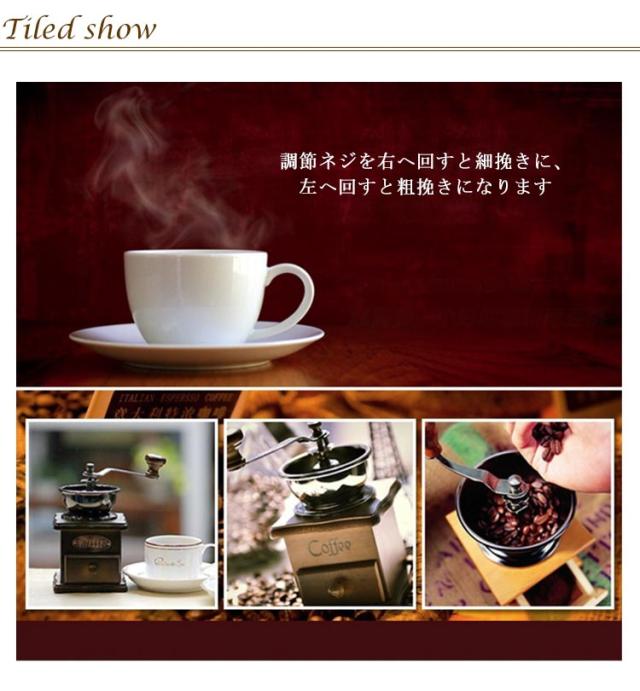 | クラシカルな雰囲気のデザインで置き物としてもピッタリです 調節ネジを右へ回すと細挽きに、左へ回すと粗挽きになります ※水洗い不可能 | |