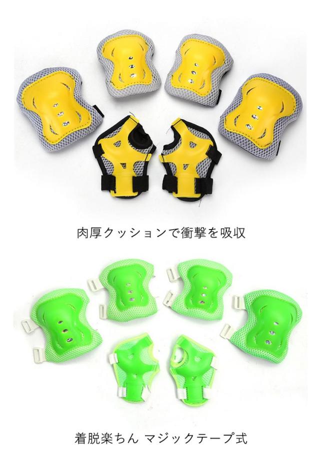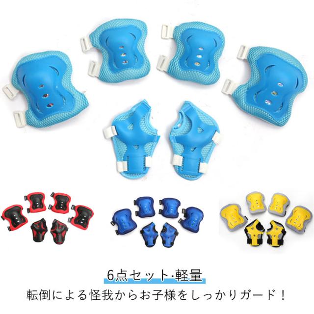 マジックテープ式 ニーパッド 6点セット プロテクター 膝あて 肘 軽量 ひじ キッズ キッズプロテクター 肘あて ひざ 軽い 手 膝 腕 けが防止 子供用 エルボーガード 自転車 ガード 怪我防止 安全 子供 男の子 女の子 リストガード