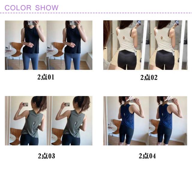 | 【2点セット】 バックのクロスデザインがシンプルなヨガタンクに女性らしさをプラス。 吸湿性を持ち、サラッとした心地良い肌触り 非常にソフトな肌触りの吸湿速乾性、伸縮性に優れた高機能素材を使用し、動きを妨げないストレスフリーな着心地。 | |