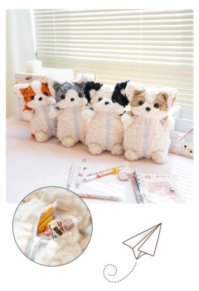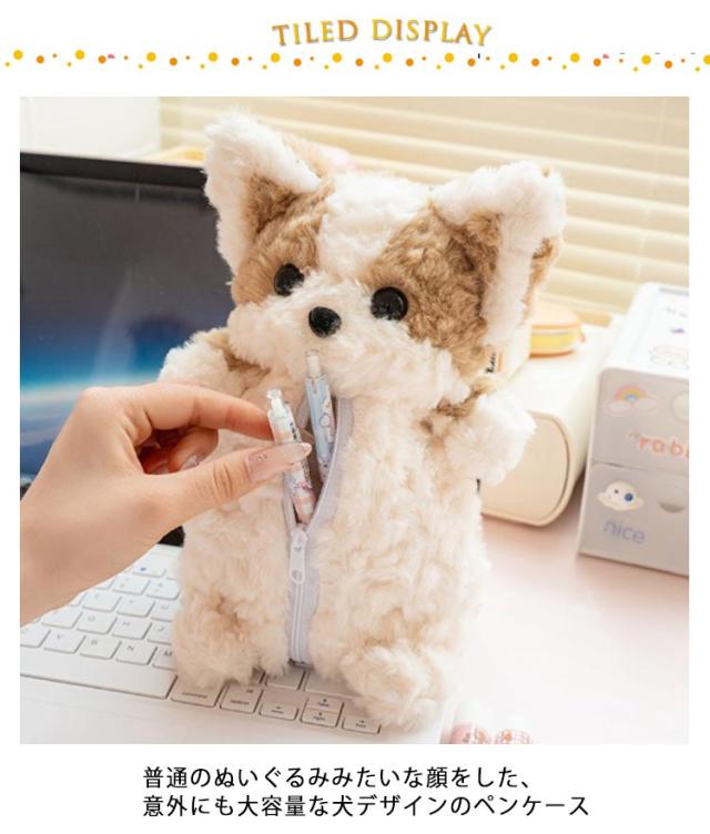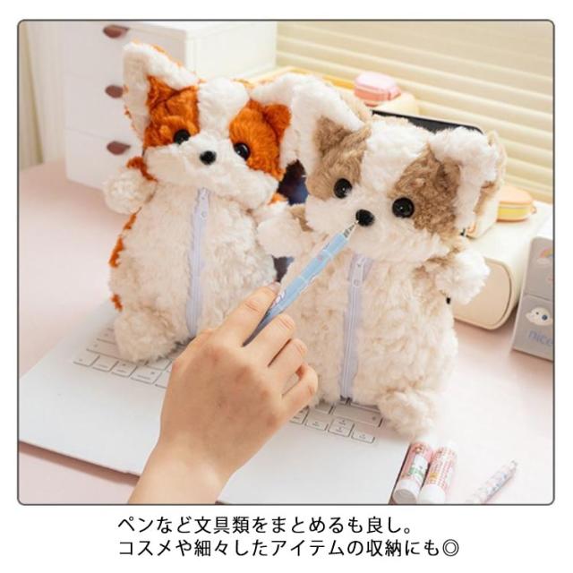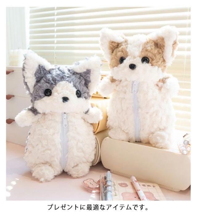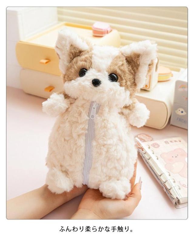 ぬいぐるみペンケース おしゃれ 大人 誕生日 文房具入れ ペンポーチ 中学生 犬 もこもこ ペンケース 女性 小物入れ かわいい ポーチ 小学生 ファスナー 筆箱 文房具収納 可愛い ぬいぐるみペンケース 雑貨 イヌ ギフト 贈り物 プレゼント