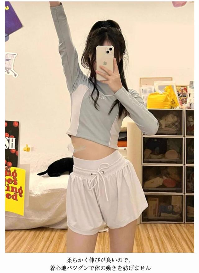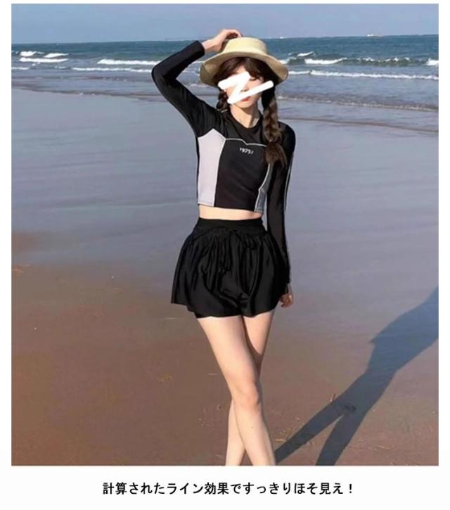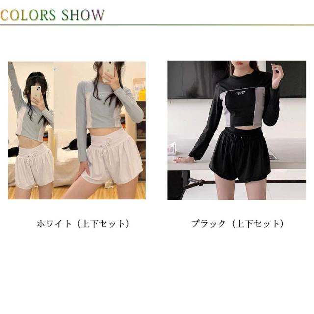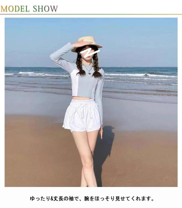 体型カバー 送料無料 パッド付き おしゃれ 水泳 ショートパンツ 上下セット 着痩せ ラッシュガード レディース セットアップ フィットネス プール セパレート シンプル 長袖 2点セット 水着 競泳水着 かわいい ママ水着 母の日