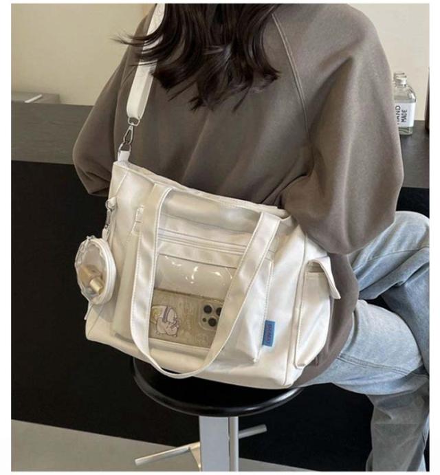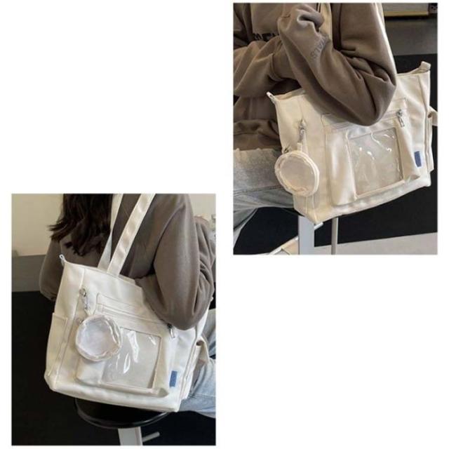 | 推しアイテムを自由にデコできる♪万能トートバッグ ショルダーバッグ、トートバッグとして使える2way! 推し活はもちろん、小物を入れて見せる収納としてもオシャレにお使いいただけます◎ 推しアイテムを自由にデコできる♪ノートPCやA4ファイル、うちわなどもすっぽり入るサイズ感。 | |