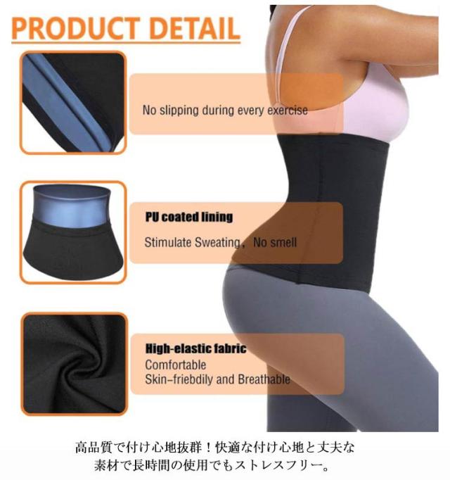 | ボディシェイプに欠かせない!発汗サウナベルト。 高品質で付け心地抜群!快適な付け心地と丈夫な素材で長時間の使用でもストレスフリー。 お腹周りの熱を効果的に蓄積!脂肪燃焼を促進し、優れたシェイプ効果でシェイプアップに最適! 代謝を上げる優れた発汗性!柔らかい蓄熱裏地が急速に代謝を上げ、効率的なトレーニングができます。 熱を閉じ込め発汗を促進!お腹周りに熱を閉じ込めサウナのような暑い空間に 速乾性があるのでたくさん汗をかいても安心! 伸縮性のある柔軟な素材。体型に変化が出てきてもそのまま使い続けられる 柔軟性も伸縮性もある柔らかな素材です。 しっかりと発汗を促進してくれるから 効率的にスリムなウエストを目指せます。 発汗性・吸水性・伸縮性 全てを兼ね備えたサウナベルト。 | |