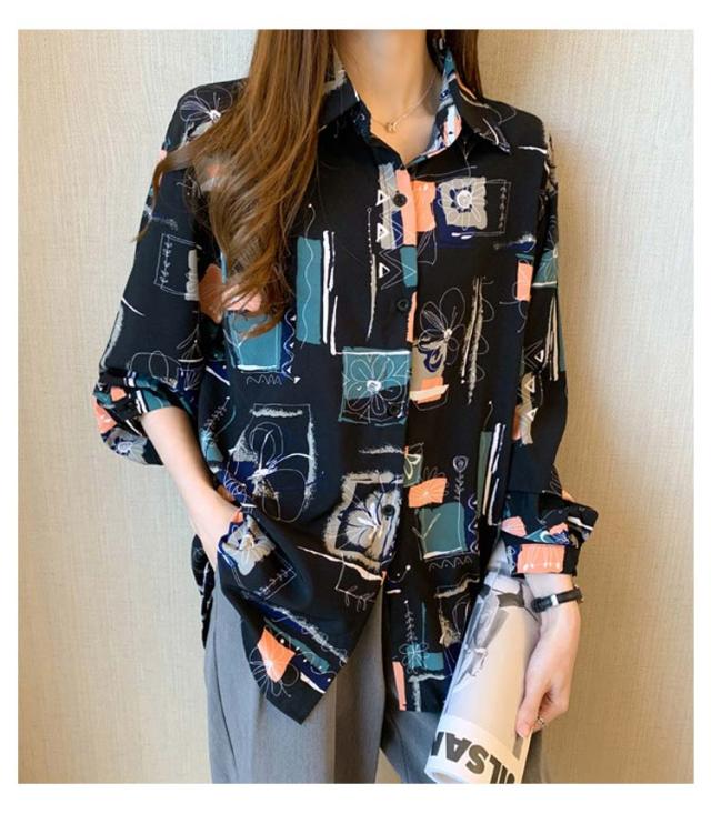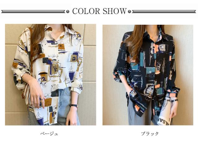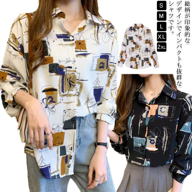 アロハシャツ 柄シャツ プリントシャツ 総柄 ブラウス ロングシャツ 長袖 チュニック レディース 羽織 開襟シャツ 体型カバー レイヤード オーバーサイズ 長袖シャツ 水彩 柄 長袖 柄シャツ 大きいサイズ ブラック