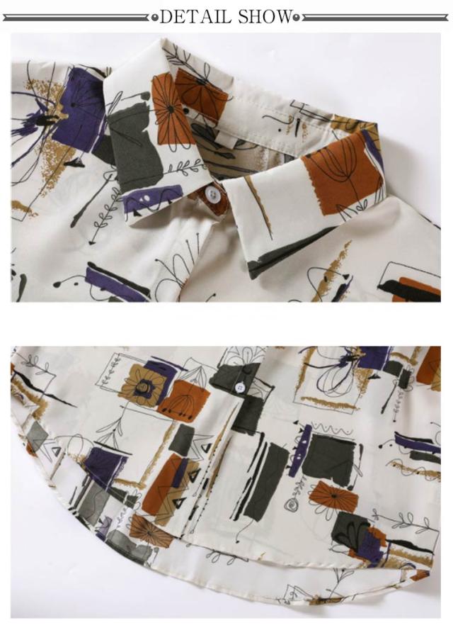 | 総柄が印象的なデザインでインパクトも抜群なシャツです。 首元が開きすぎないレギュラーカラーを採用しているので、ラフに見えすぎずしっかりきちんと感も◎ しっかりとした肌触りで柔らかい生地感、滑らかでさらりと軽い着心地。 ポップなデザインからシックな物までどんなコーデにも合わせられるアイテム。 大人っぽく甘さを控えたカラーも魅力的。お好みとシーンに合わせてお選び頂けます。 | |
