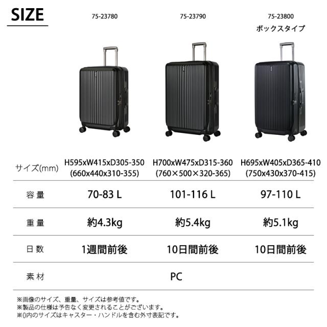 エミネント EMINENT リッド 新シボ2 ボックスタイプ スーツケース 97L (110L) 拡張 フロントオープン ダブルキャスター キャリーケース 75-23800