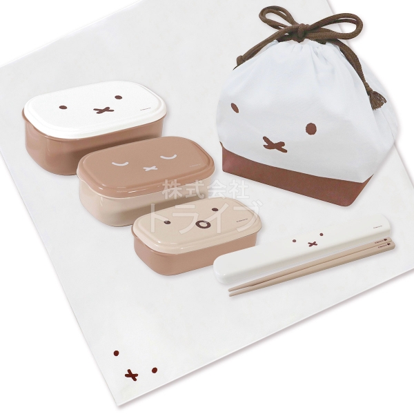 ミッフィー フェイス お買得4点セット シール容器3P 箸&箸箱 ランチクロス 巾着