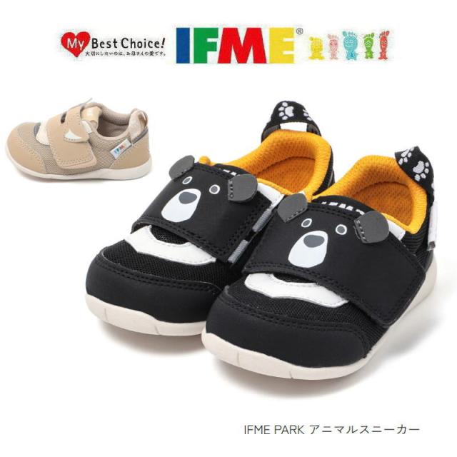 イフミー IFME キッズ ベビー スニーカー イフミーパーク シューズ 20-5801 ワンベルト アニマル スニーカー 子供靴 男の子 女の子 ベルクロ ローカット 通園 普段履き ベージュ ブラック おしゃれ かわいい 誕生履き 反射材 12cm 12.5cm 13cm 13.5cm 14cm 14.5cm 15cm