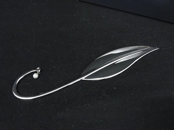 ■極美品■ MIKIMOTO ミキモト 本真珠 アコヤ真珠 パール 約4mm リーフ 葉 ブックマーカー 栞 しおり シルバー系 DI7377
