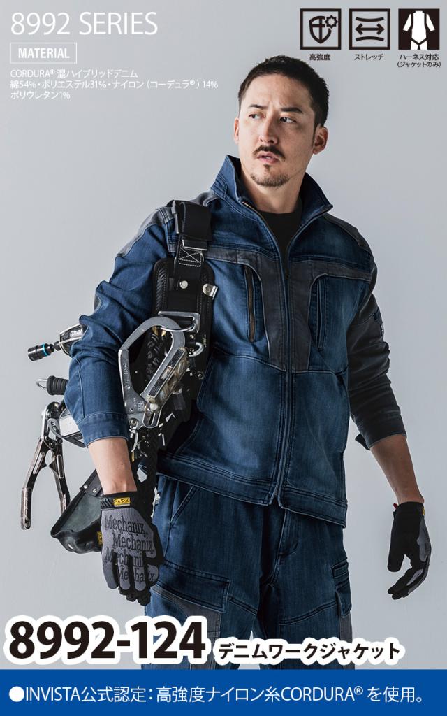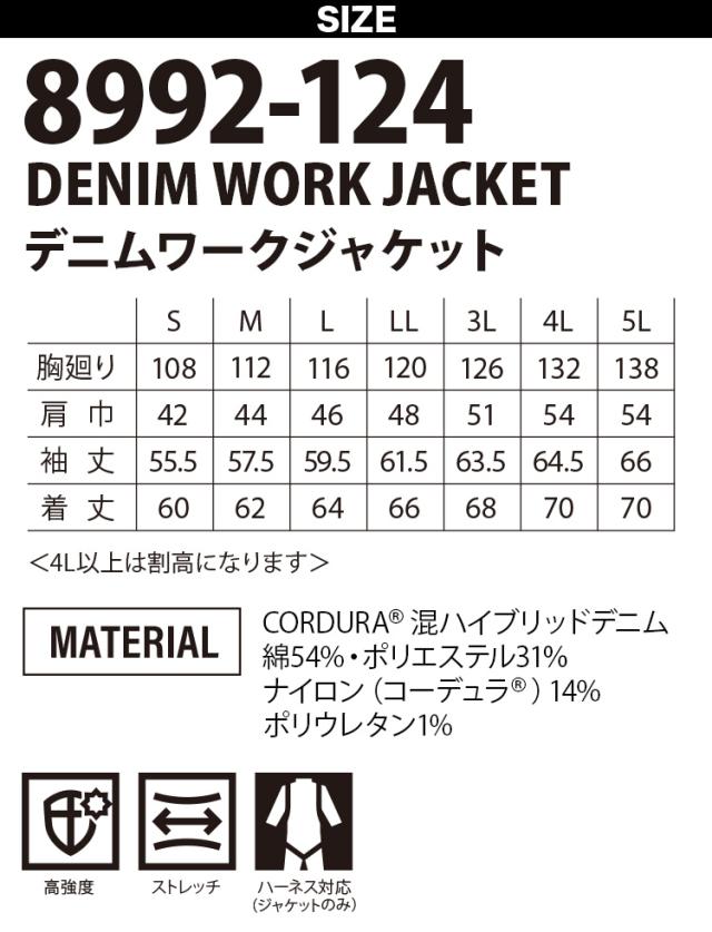 寅壱 2025年秋冬新商品 デニムワークジャケット 8992-124 高強度ナイロン CORDURA コーデュラ ストレッチ 縦ポケット レギュラーシルエット 脇下ゆとりある設計 パイピング 作業着 作業服 TORA