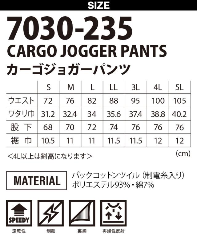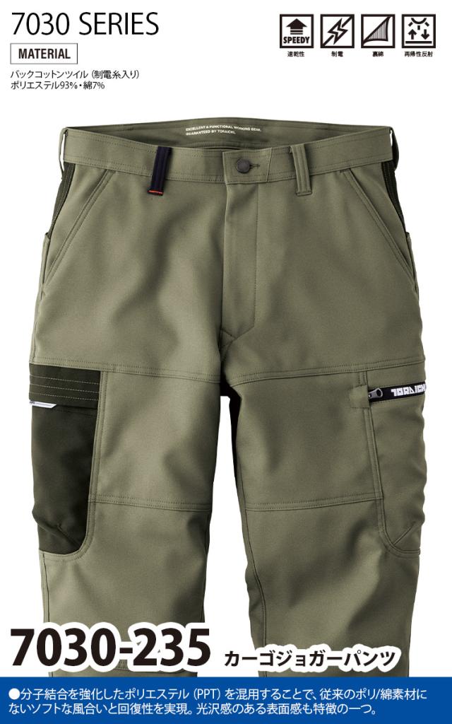 寅壱 2025年秋冬新商品 カーゴジョガーパンツ 7030-235 速乾 制電 裏綿 再帰性反射 スマートフォンポケット レギュラーシルエット おしゃれ かっこいい カジュアル ワーク ズボン 作業着 作業服 TORA