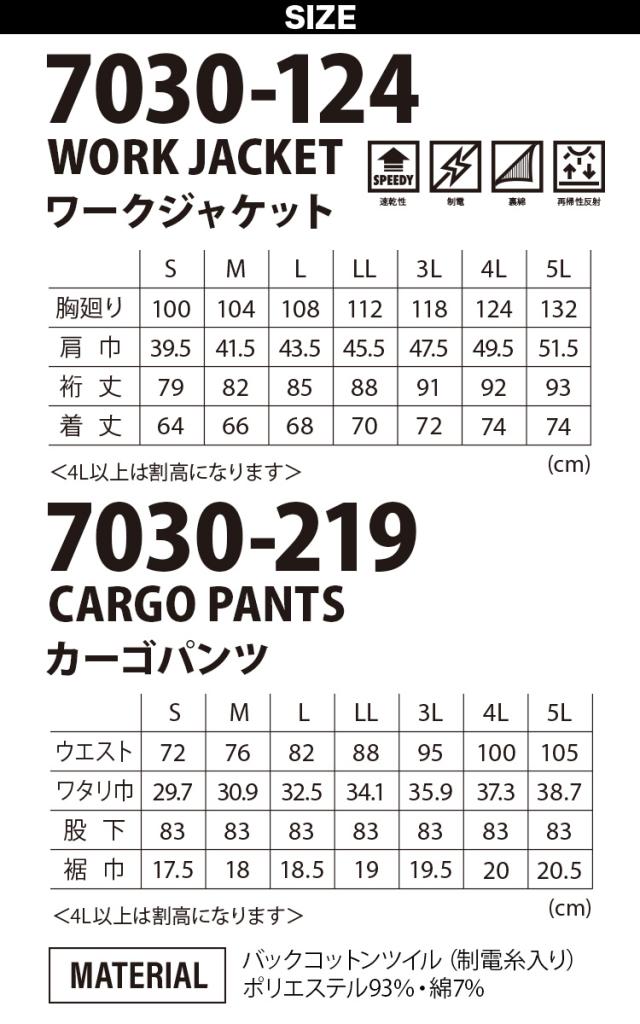 寅壱 ワークジャケット カーゴパンツ 上下セット 127-7030-124-7030-219